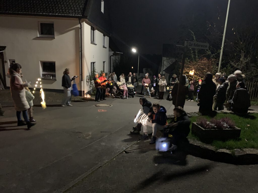 hieß es am 08.11.2024 wieder, als etwas über 20 Kinder mit ihren bunten Kunstwerken anläßlich des St. Martin-Festes durch Morkepütz zogen. An 7 geschmückten Stellen im Dorf, die so gewählt wurden, dass jeder Dorfbewohner barrierefrei einen Platz erreichen konnte, sangen die Kinder Ihre Lieder und freuten sich über Süßigkeitenspenden der Zuhörer. Nach dem gemeinsamen Abschluss am Dorfplatz konnte jedes Kind mit einer prall gefüllten Tüte nach Hause gehen. Zudem gab es noch einen Weckmann und Punsch am großen Dorffeuer.