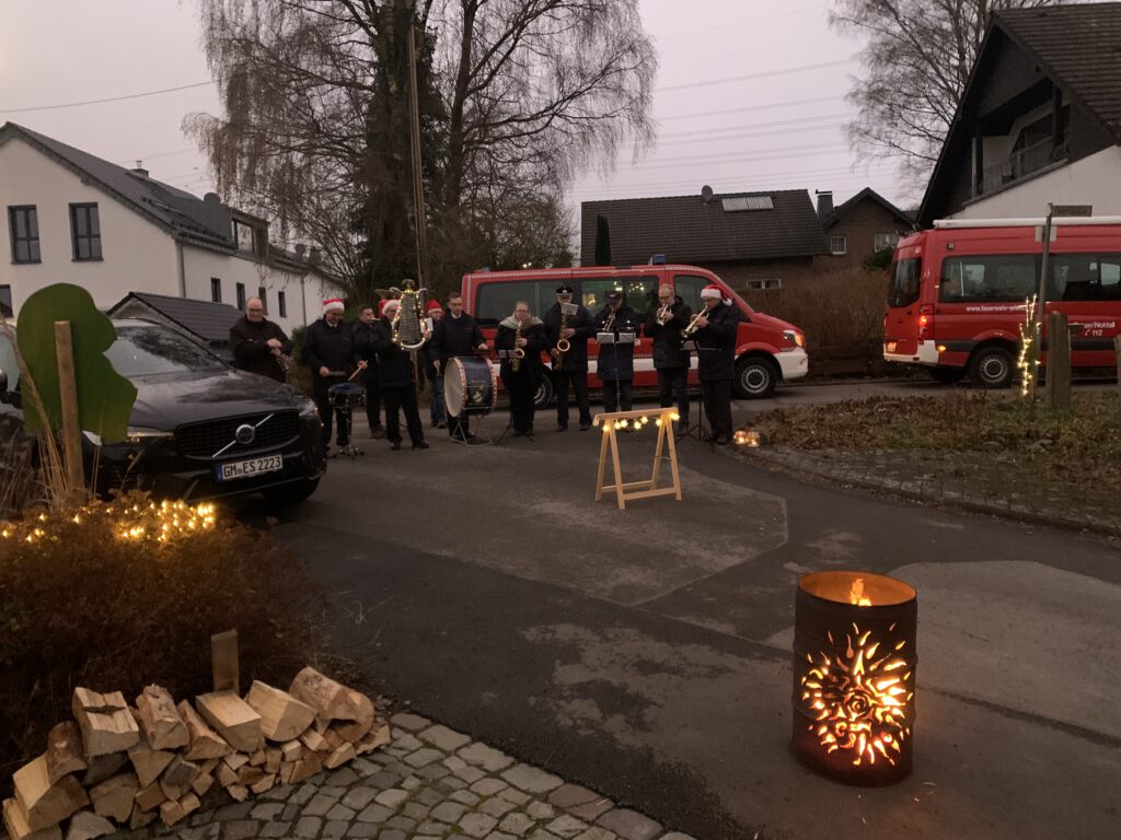 hieß es am 15.12.2024, als der Feuerwehrmusikzug auf seiner Dörfertour auch in Morkepütz einen Stopp machte und die Dorfbewohner mit traditionellen Weihnachtsliedern in Stimmung versetzte. Der Dorfverein hatte an den alten Feuerwehrturm in Dorfmitte eingeladen und bei Waffeln, Glühwein und Würstchen kamen ca. 30 Morkepützer zum Plausch zusammen. Unter dem Pavillion ergab sich ein reger Austausch und Jung und Alt rückte wetterbedingt eng zusammen. Der Feuerwehrmusikzug hat sich bereits für den 3. Advent 2025 angekündigt und wir freuen uns, diese wunderbare Veranstaltung wiederholen zu können.