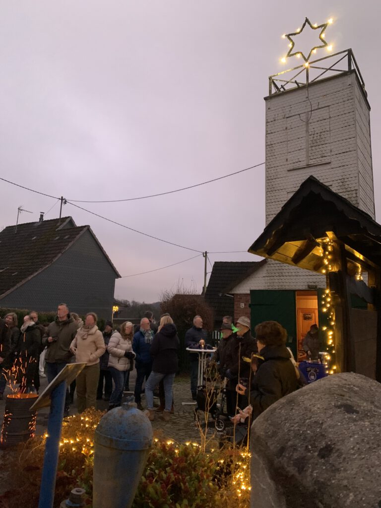 Am 14.12. 2025 hat der Feuerwehrmusikzug auf seiner Dörfertour auch wieder in Morkepütz einen Stopp gemacht und die Dorfbewohner mit traditionellen Weihnachtsliedern in Stimmung versetzt. Dazu hatte der Dorfverein an den alten Feuerwehrturm in Dorfmitte eingeladen und bei Waffeln, Glühwein und Würstchen etwas auf Weihnachten einzustimmen. Das Wetter war diesmal trocken und bei der Feuertonne konnten alle einen stimmungsvollen Abend geniessen.